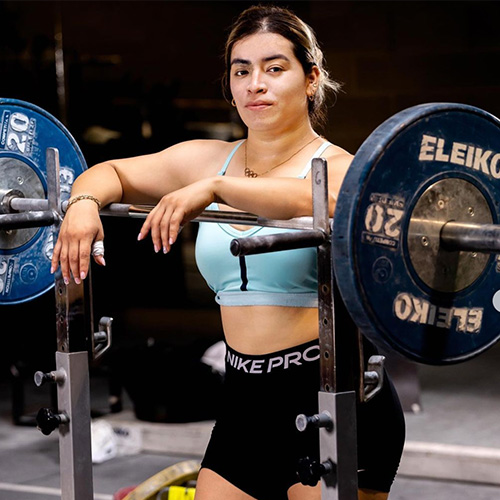 halterofilia femenina de 76 kg levantando 108 kg y 137 kg en las fases de arranque y cargada y envión